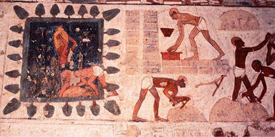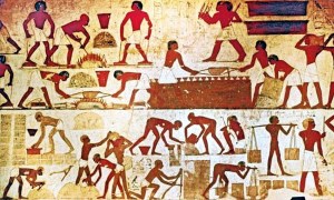 From John Currid’s book Ancient Egypt and the Old Testament – pictures from the Rekhmire Chapel in Thebes dating to the middle of the fifteenth century BC. They illustrate the brick making process in ancient Egypt.